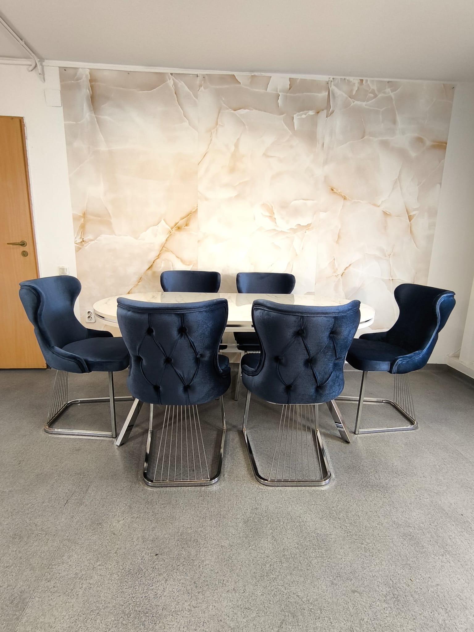 • Set stella albastru cu argintiu masa+ 6 scaune PERSONALIZABIL PE CULORI